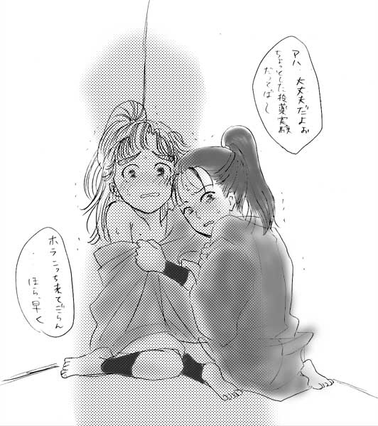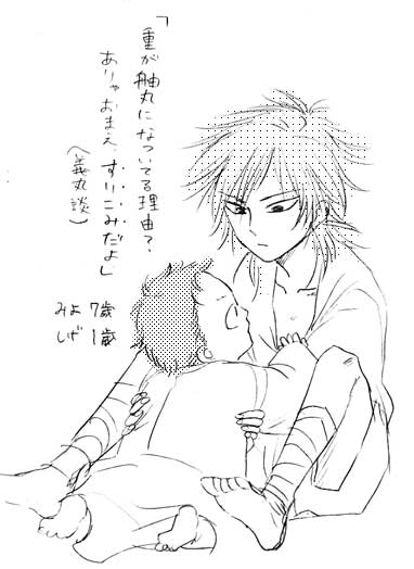 MY設定で、重は1歳のときに拾われてきて、したっぱのみよ(7歳)に育てられます。なのでみよにとっては重は息子で弟で、水練の相方で、仲間であり、それ以上には見られません。